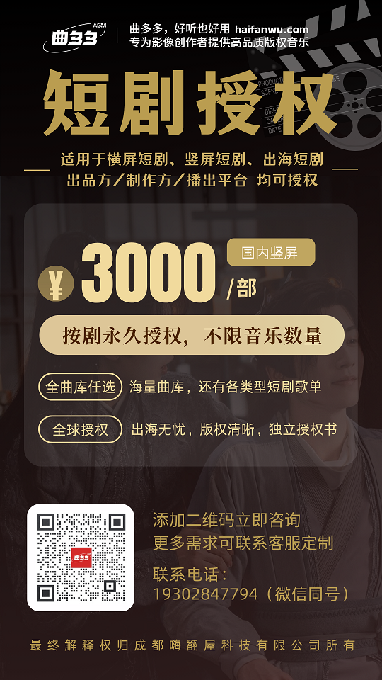 3000起/部 全曲库任选 全球授权